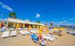 Собствен, на 30 м. от хотела, пресича се път през подземен преход, пясъчно-чакълест. Чадъри и шезлонги на плажа и при басейна - безплатно. Плажни кърпи за басейна и плажа – не се предлагат.